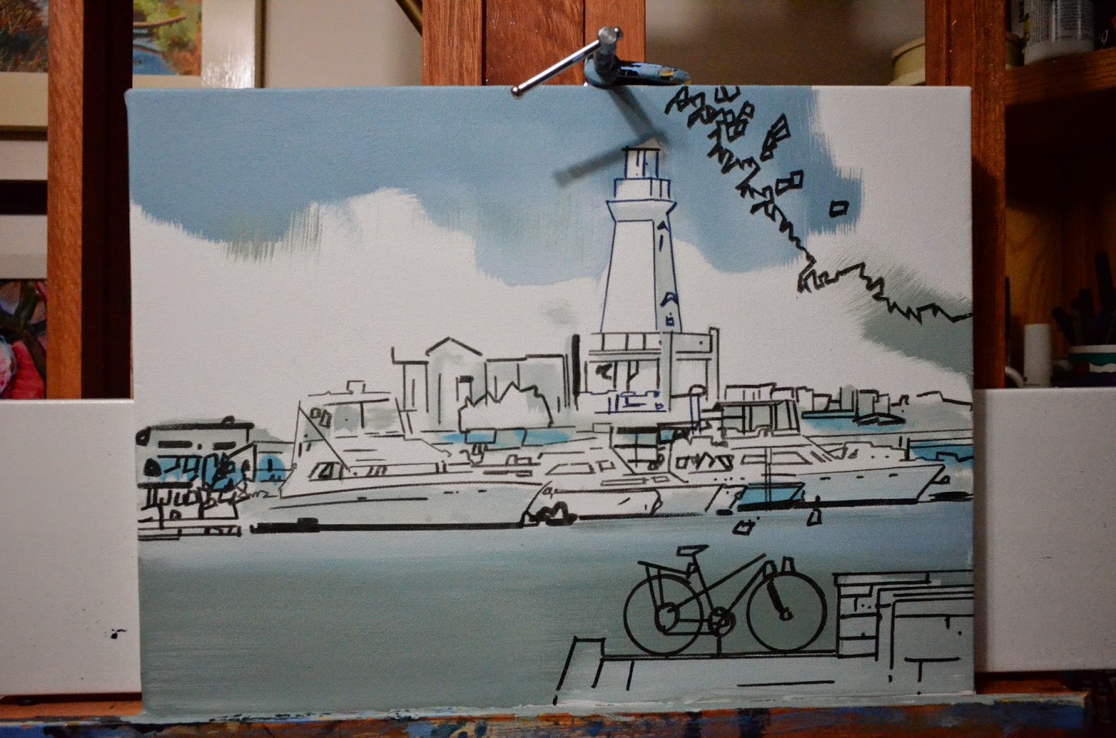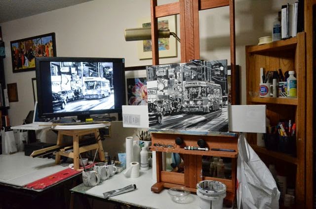As a rule I dislike taking on commissions. This one, however was an interesting challenge. A friend who works for GO Transit wanted a painting to commemorate the arrival of their 500th double decker bus. I got to spend time in the depot and the service garage, interact with the mechanics and get a sense of the pride and professionalism which goes into getting us around in the world.